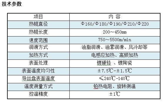 熱輥主要特點(diǎn) 1. 滌綸、錦綸絲熱輥利用電感應(yīng)加熱,熱管均溫或分段控溫技術(shù),使熱輥工作區(qū)表面溫度均勻。能滿足不同的工業(yè)絲、民用絲FDY紡絲工藝的要求 2. 丙綸絲熱輥利用電感應(yīng)加熱或高頻加熱技術(shù),使熱輥工作區(qū)表面溫度升溫迅速。該輥結(jié)構(gòu)簡(jiǎn)單,成本較低,運(yùn)行平穩(wěn)可靠,是丙綸FDY絲紡絲經(jīng)濟(jì)合理的選擇。 3. 高頻熱加熱輥利用電感應(yīng)加熱,通過(guò)將工頻電壓轉(zhuǎn)換成更高頻率的加熱電壓并采用分段控溫技術(shù),使工作區(qū)表面溫度均勻。該設(shè)備系統(tǒng)完善,結(jié)構(gòu)簡(jiǎn)單,在高溫下運(yùn)行平穩(wěn)可靠,能滿足不同纖維FDY紡絲工藝的要求。